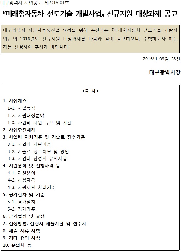 2016³â ¹Ì·¡ÇüÀÚµ¿Â÷ ¼±µµ±â¼ú °³¹ß»ç¾÷ ´ë»ó°úÁ¦ °ø°í¹®(ÃÖÁ¾).hwp (size:41,984Kb)
