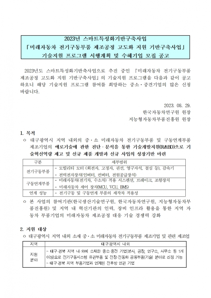 2023³â ½º¸¶Æ®Æ¯¼ºÈ±â¹Ý±¸Ãà»ç¾÷ ±â¼úÁö¿øÇÁ·Î±×·¥ ½ÃÇà°èȹ ¹× ¼öÇý±â¾÷ ¸ðÁý