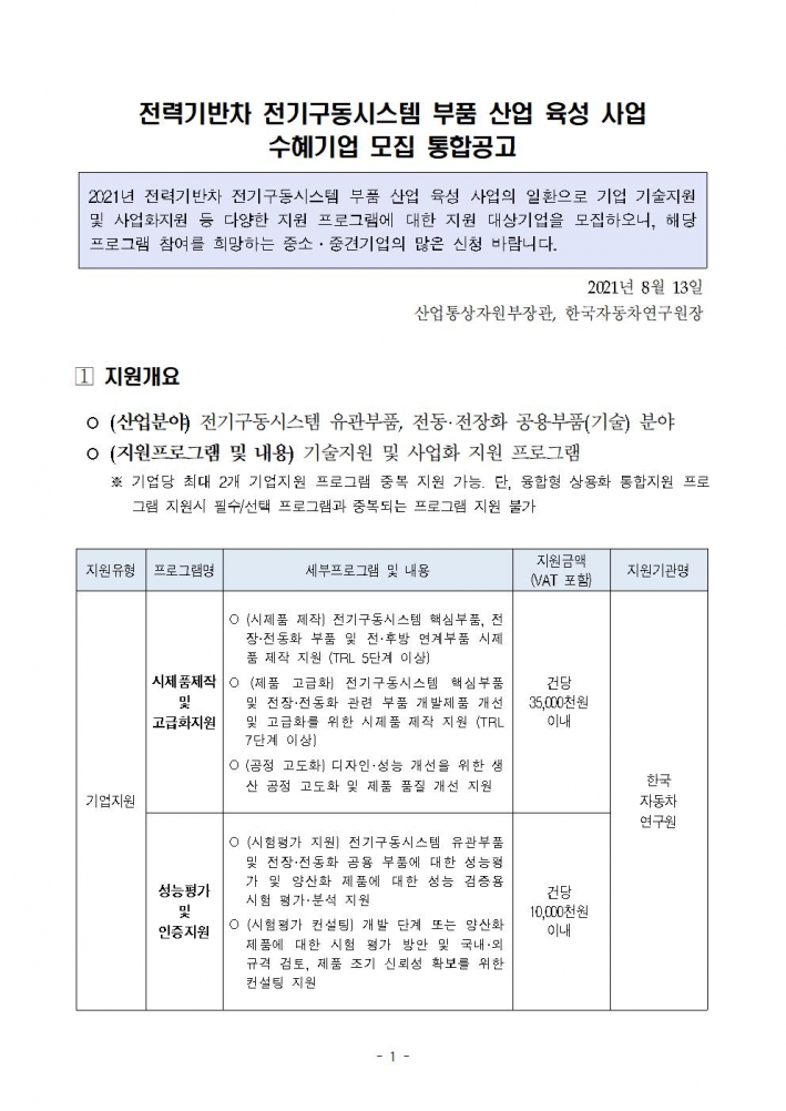[»ç¾÷°ø°í] Àü·Â±â¹ÝÂ÷ Àü±â±¸µ¿½Ã½ºÅÛ ºÎǰ»ê¾÷ À°¼º»ç¾÷ ¼öÇý±â¾÷ ¸ðÁý ÅëÇÕ°ø°í