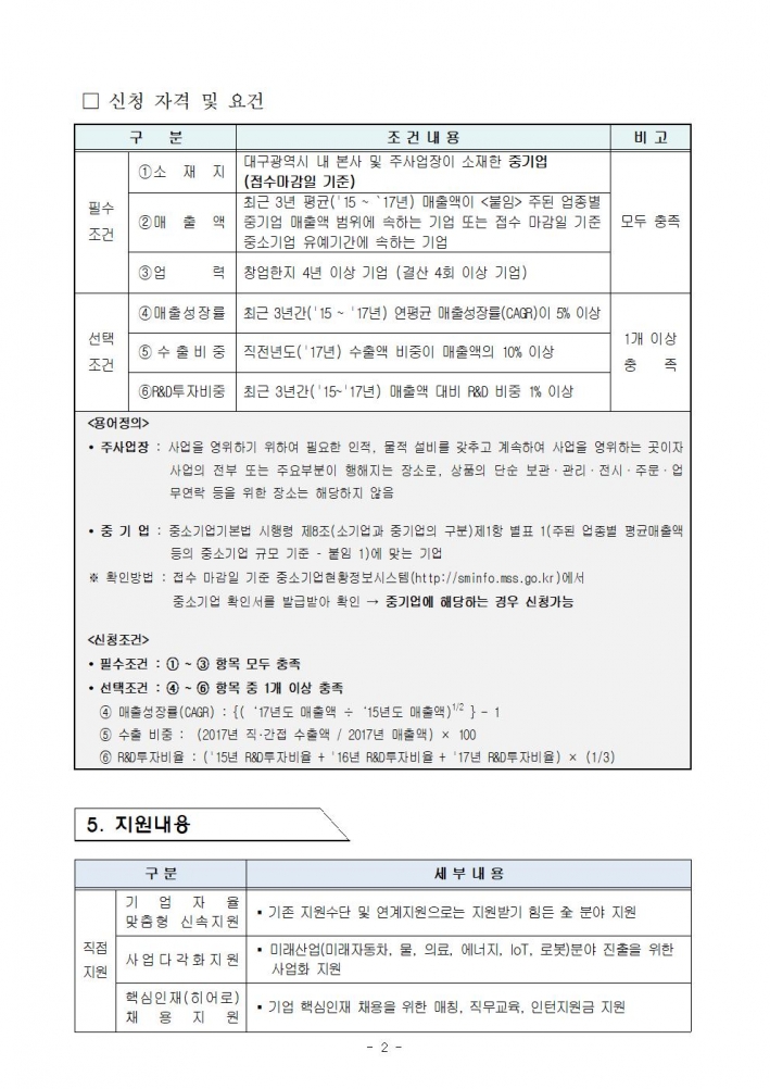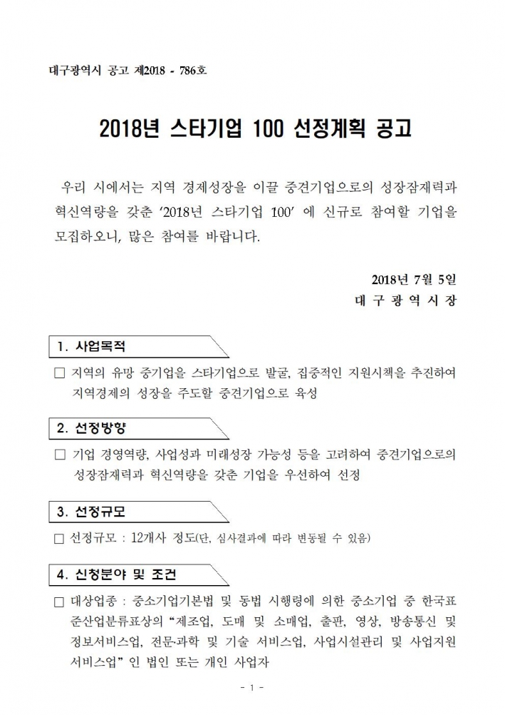 2018³â ´ë±¸±¤¿ª½Ã ½ºÅ¸±â¾÷ 100 ¼±Á¤°èȹ °ø°í