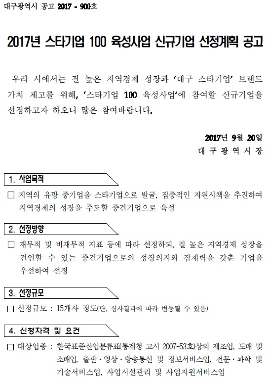 2017³â ½ºÅ¸±â¾÷ 100 À°¼º»ç¾÷ ½Å±Ô±â¾÷ ¼±Á¤°èȹ °ø°í